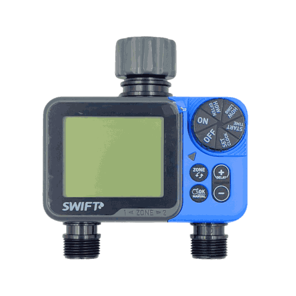 Automate your garden irrigation with the SWIFT Dual-Outlet Water Timer. This smart device allows you to manage two separate garden zones with completely independent watering plans, maximizing efficiency and plant health.